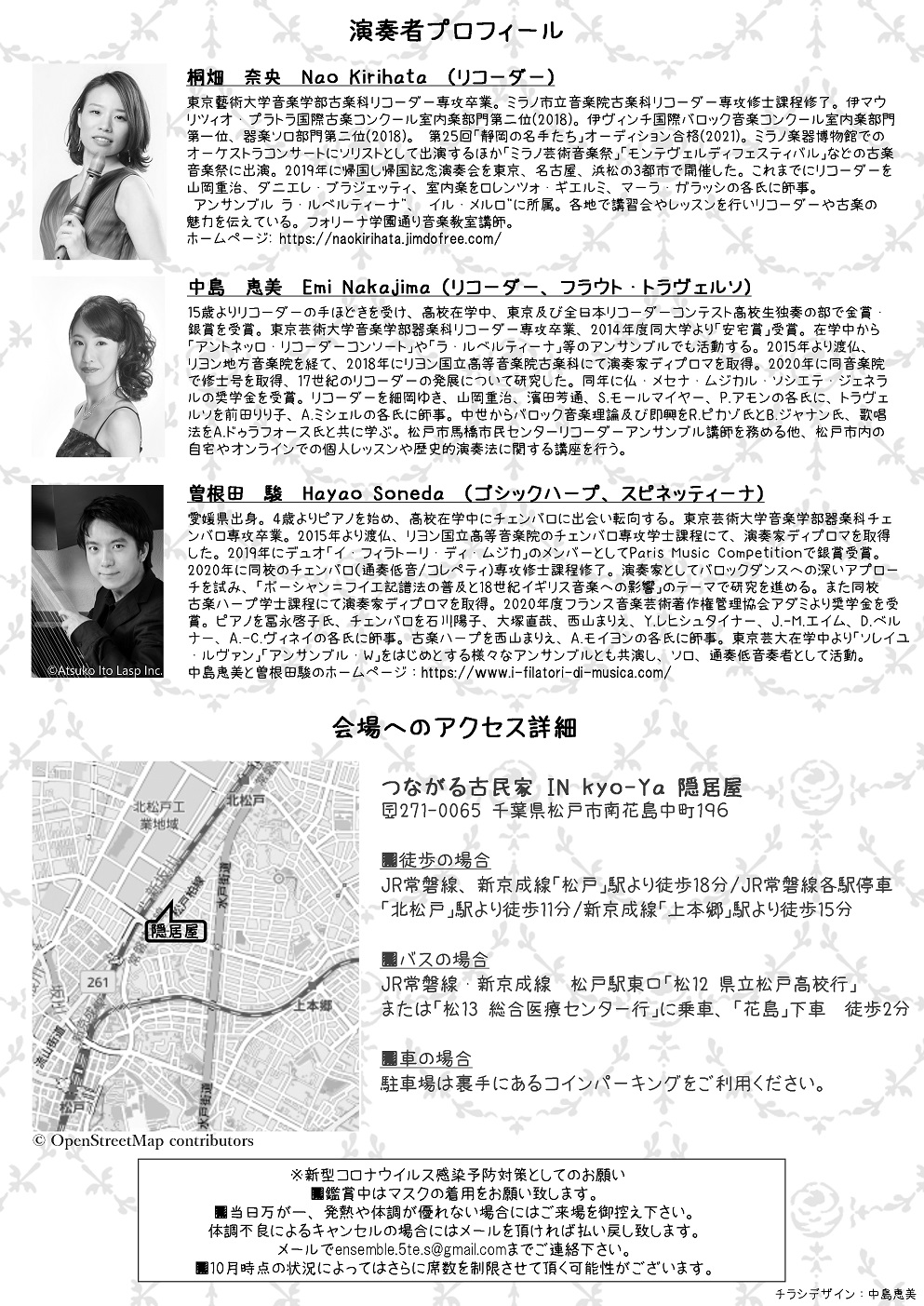 藝大の先輩であるリコーダー奏者の桐畑奈央さんとの演奏会です。