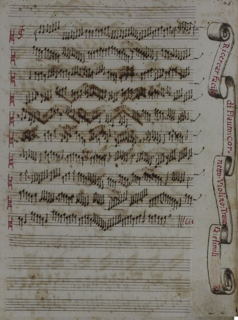 ヴィルジリアーノと同じころの鍵盤曲では縦がずれている場合がほとんどなのでモダン譜を重宝するのですが、ドルチメロのリチェルカーレは単旋律なうえ、出版物ではなくて手稿なので音型の書き方に明らかに作曲者側の意図が反映されていて現代の記譜に直すと小節線のせいでそれが反映されていなくて却って見づらくなってしまっていました。