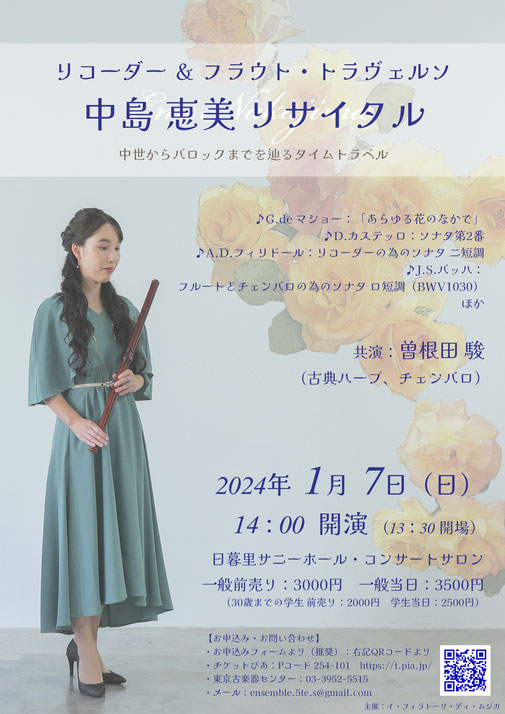 ここからはお知らせです。年明け早々ですが1月7日(日)14:00には日暮里サニーホールコンサートサロンで妻のリサイタルが予定されています。