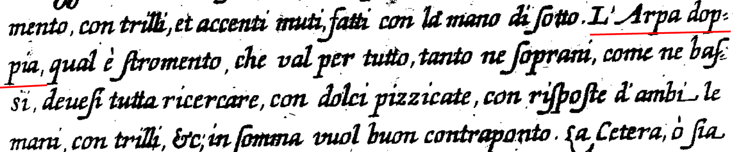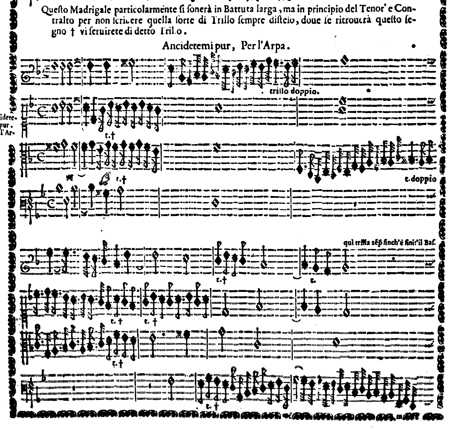 最近新しい日本語訳が発表されたアゴスティーノ・アガッツァーリの1607年『低音上での演奏法』でもハープ、アルパ・ドッピアの演奏法の特徴として、トリッロが挙げられているので、トリッロはハープの長所だという共通の認識があったのかなと思います。