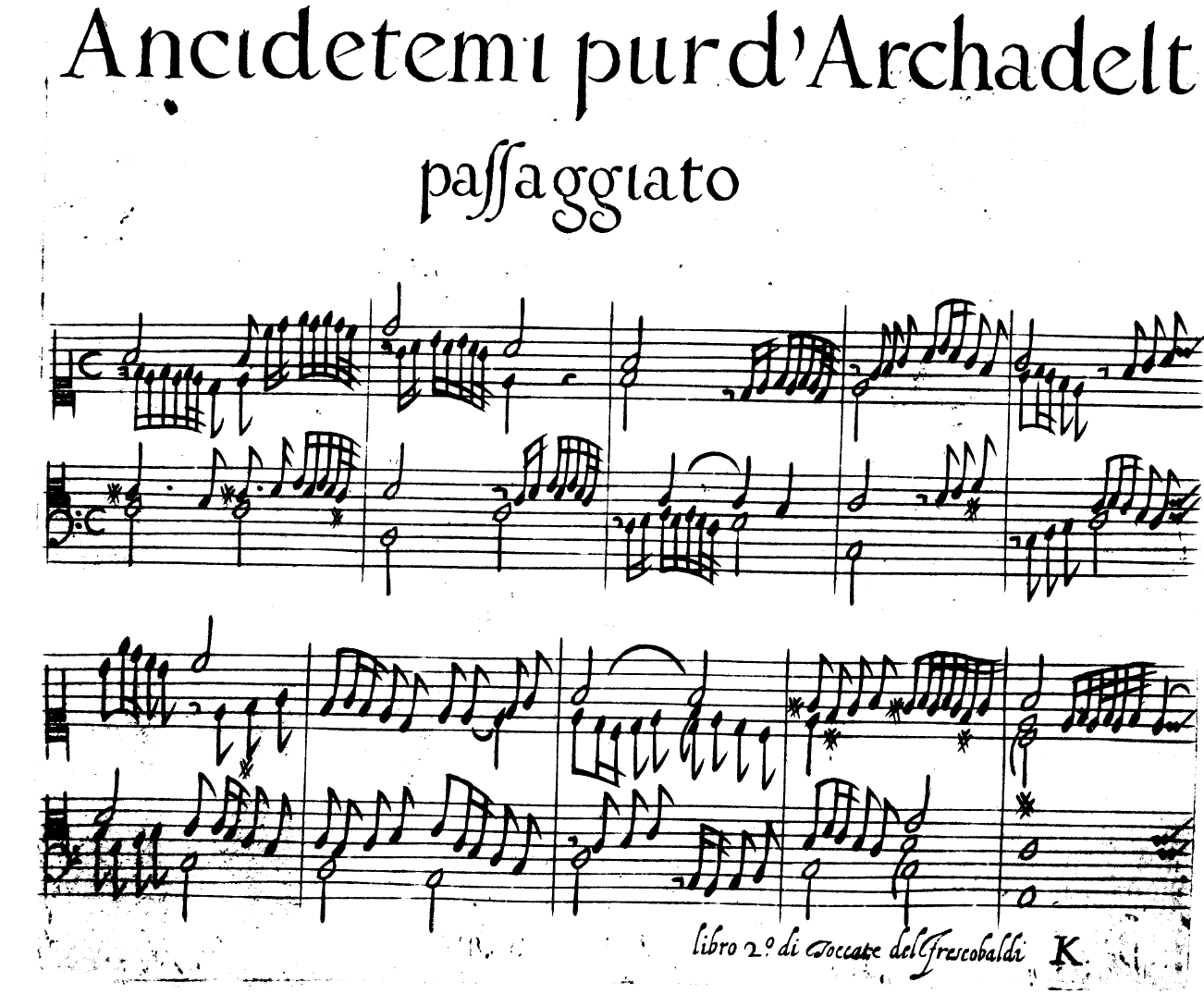 丁度同じ時代に活躍したのジローラモ・フレスコバルディは1616年の版のトッカータ集第1巻(初版は1615年)で、