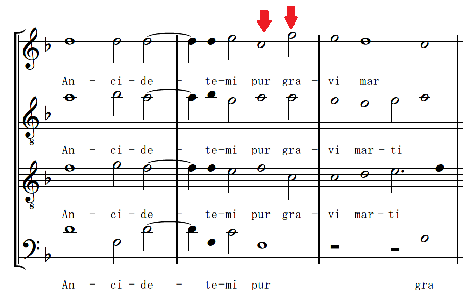 ちなみに、16世紀対位法の大家、ジョゼフォ・ツァルリーノによると多声の曲はテノールを基準に全体の旋法を決めるということなので、この曲全体の旋法は第1旋法ということになりますね。