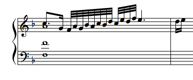 トラバーチの編曲では、沢山音を入れたいところでは、原曲の音価が引き延ばされています。