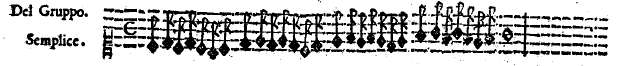 例として使われている音も、カヴァリエ―リは同じ音が2個連続しているとき、カッチーニは1音下行するときと違っています。
