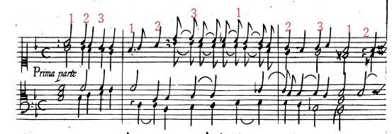 その他有名な例では、G.フレスコバルディのロマネスカも同じトリックが使われています。