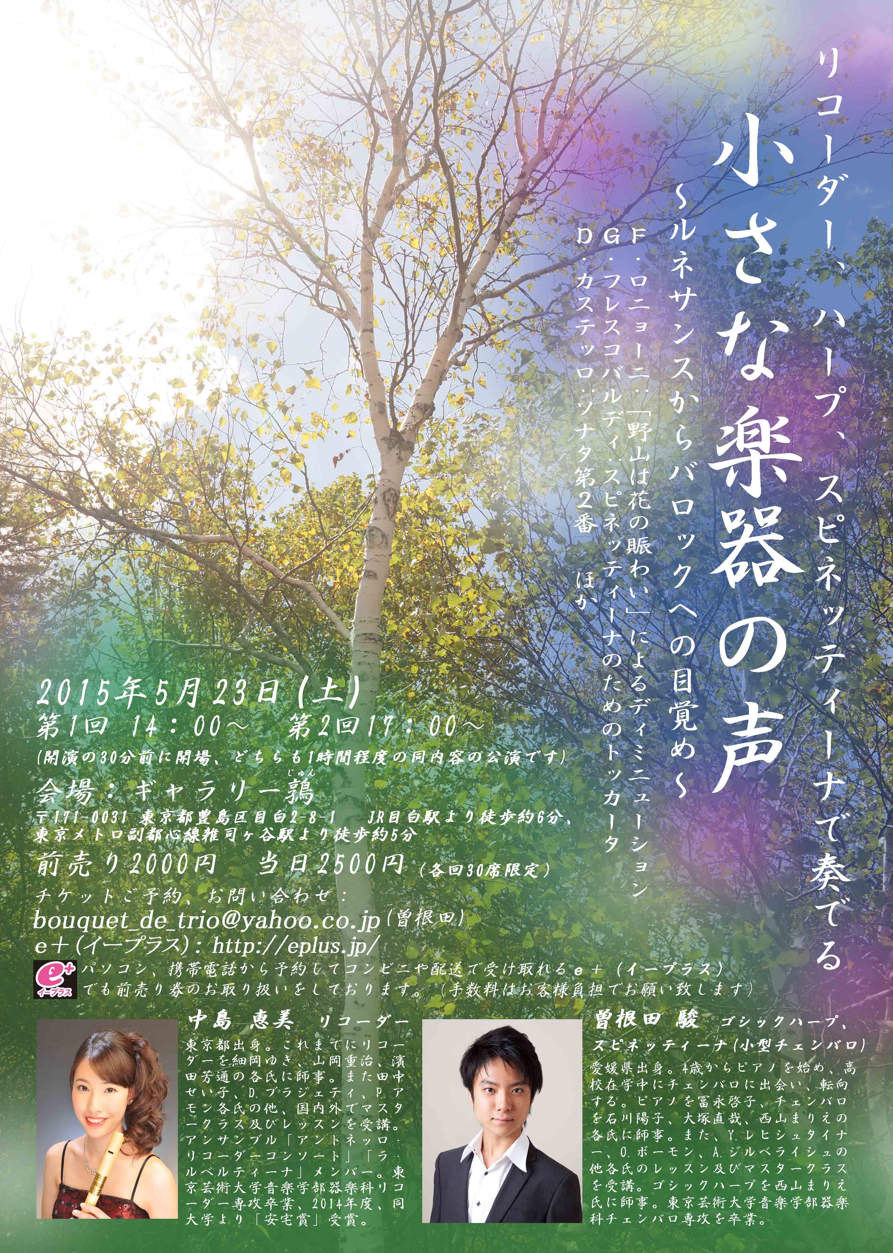 【その『声』に耳を傾けて・・・ リコーダー、ゴシックハープ、スピネッティーナ(小型チェンバロ)で奏でるひととき】