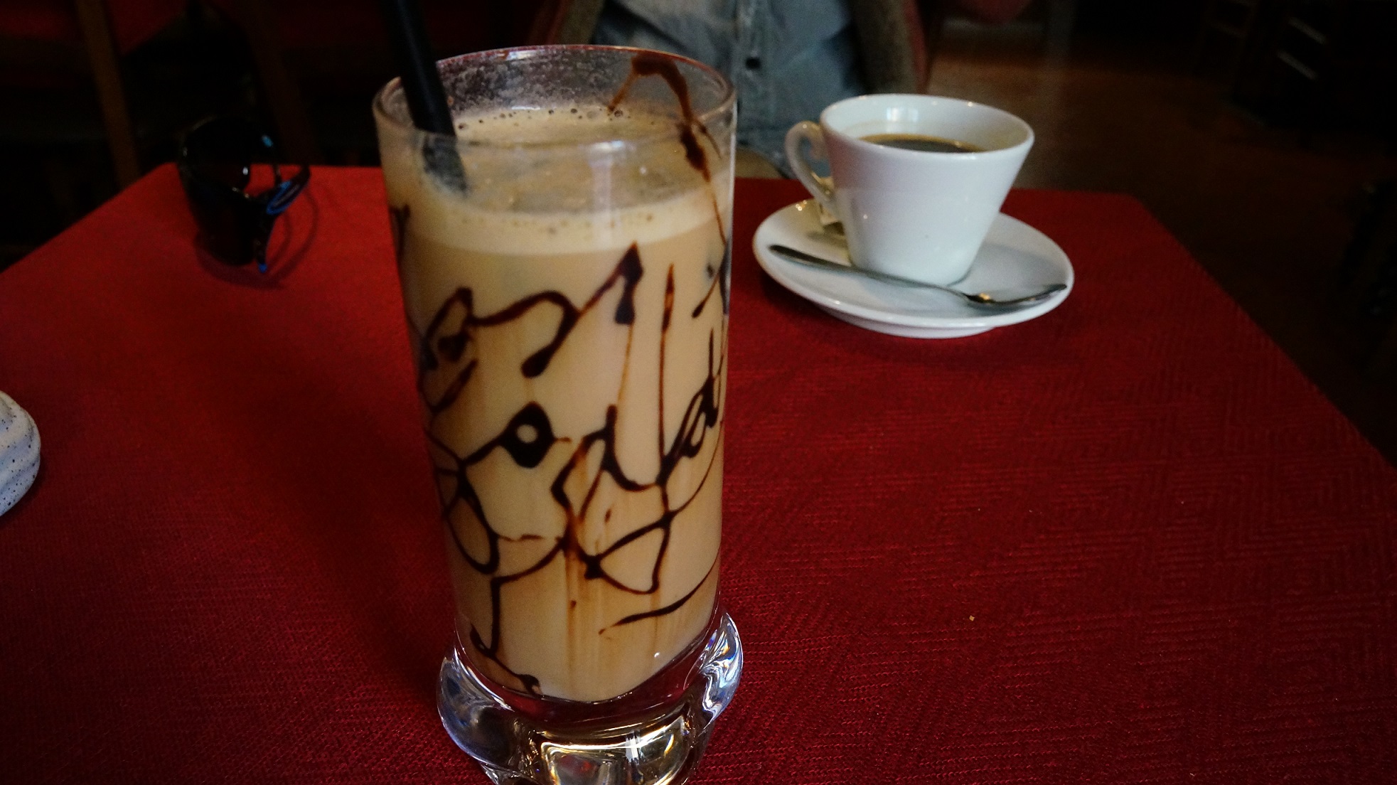 イタリア版アイスコーヒーCaffe shakerato(手前)とアメリカンCaffe americano(奥)