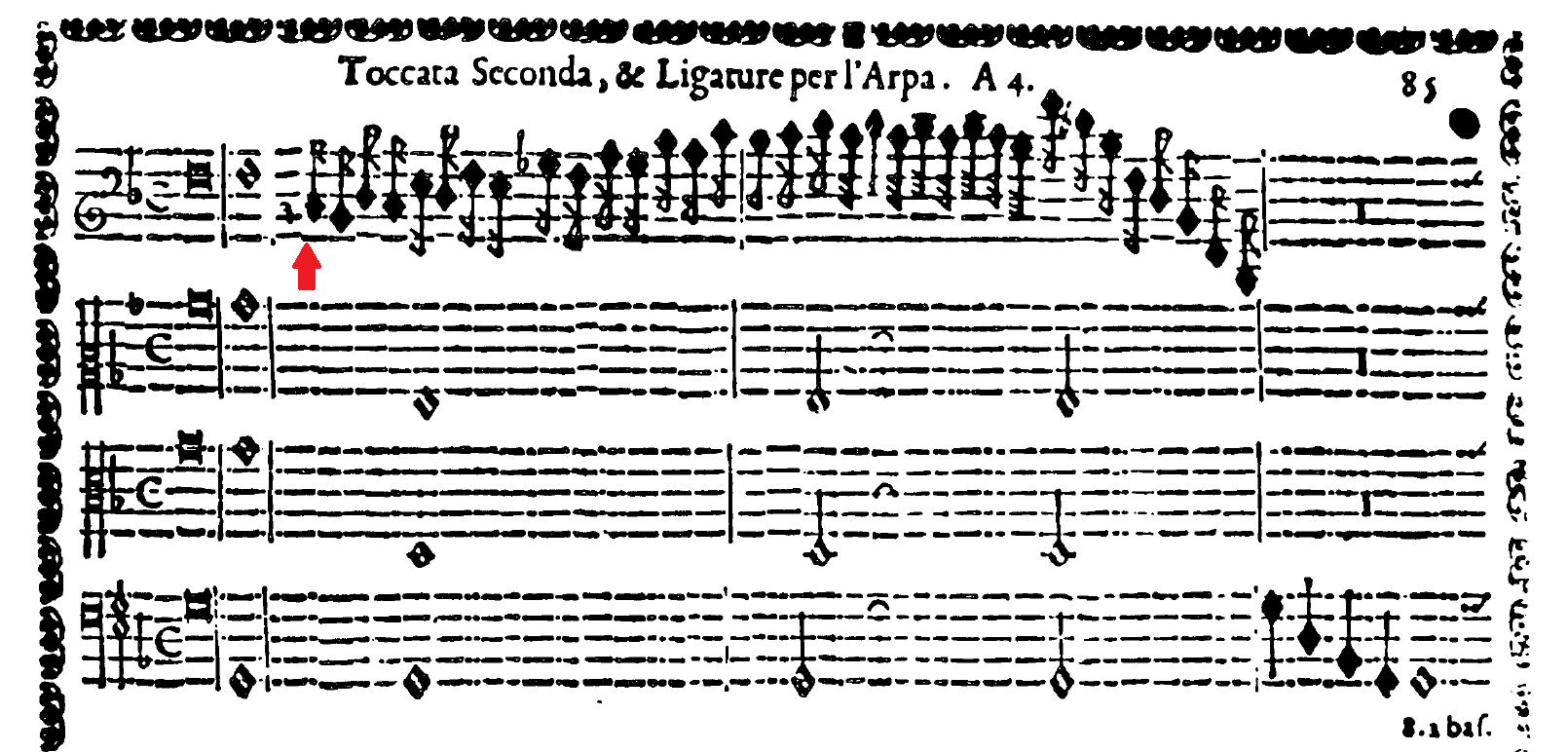 丁度同じ時代に活躍したのジローラモ・フレスコバルディは1616年の版のトッカータ集第1巻(初版は1615年)で、