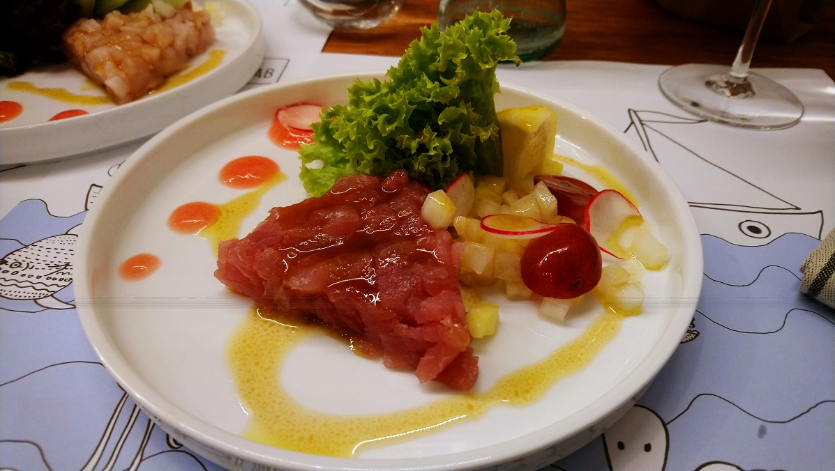 どちらも玉ねぎやレモン、パイナップルと混ぜられています。魚も新鮮で美味しかったです!