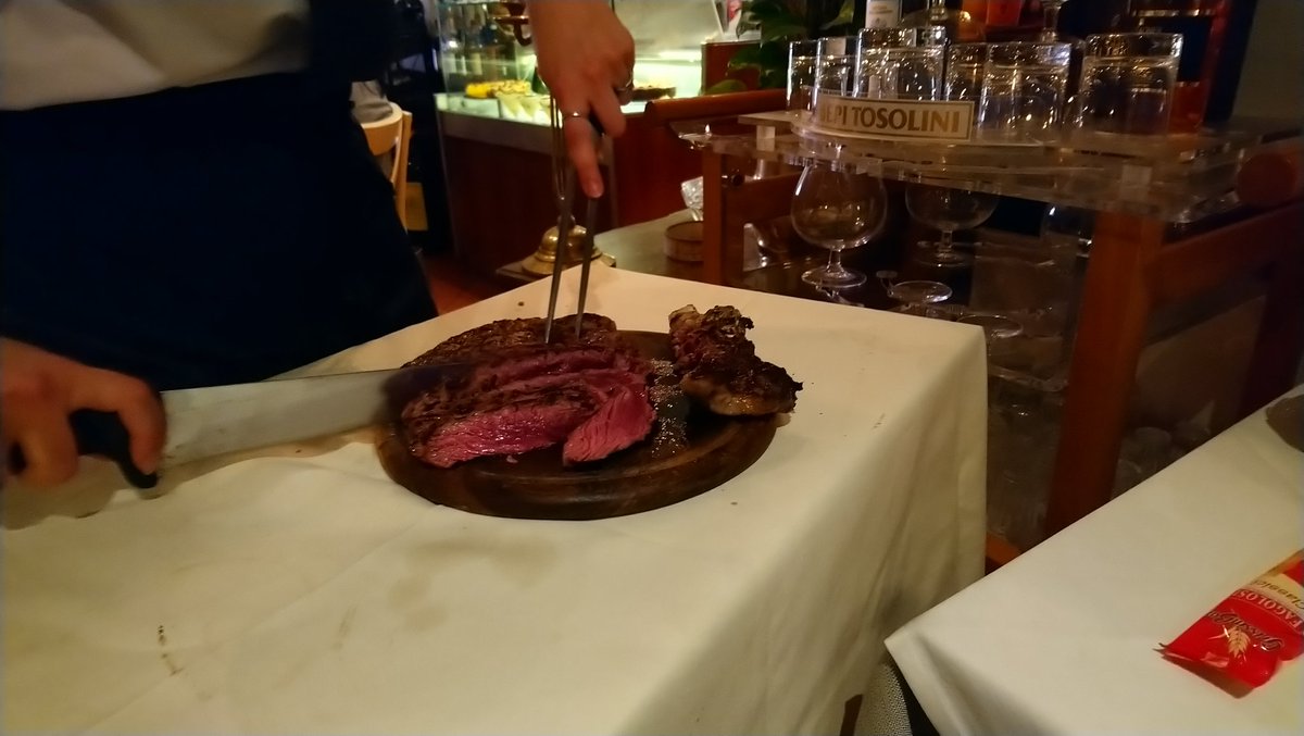 それでも、数回はその土地の美味しいものを食べに出かけるようにしていて、フィレンツェでは2回ほどレストランに行きました。1回目は海鮮料理を扱うバーみたいなところに、2回目は友達が勧めてくれたレストランで名物のTボーンステーキを食べました。