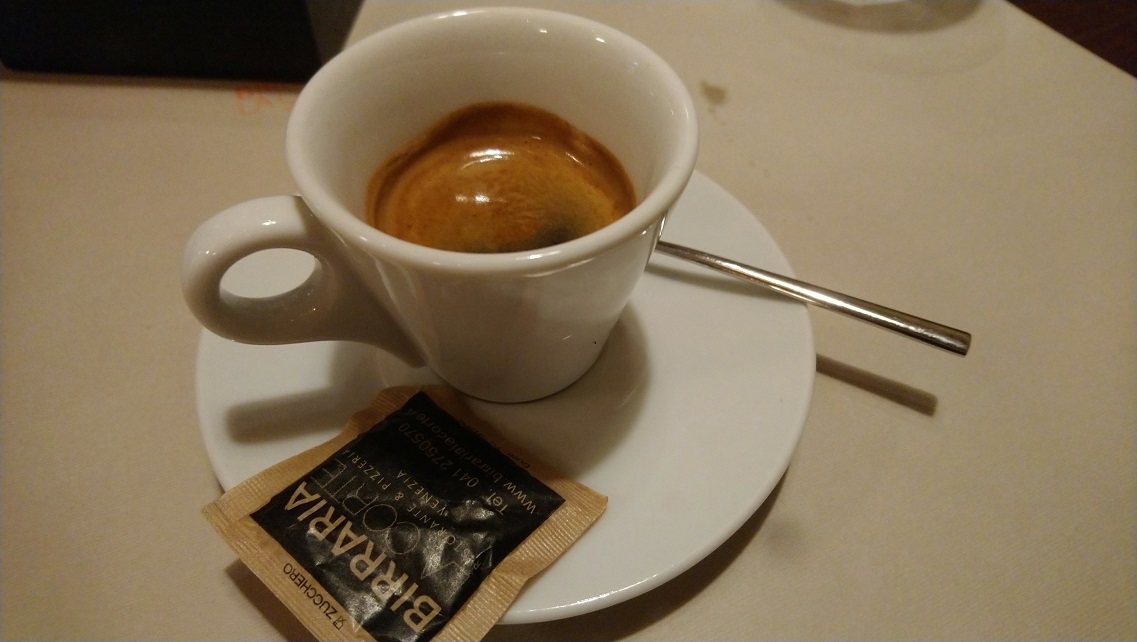 名前忘れたけど、多分ヘーゼルナッツのコーヒーcaffè alla nocciola…超甘いです。