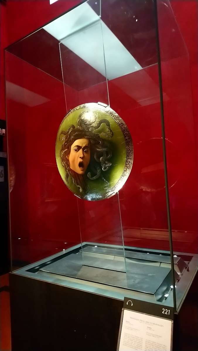 メディチ家歴代のコレクションが所蔵されているだけあってボッティチェリ、ダ・ヴィンチ、カラヴァッジョ等のイタリアルネサンス美術の宝庫とも言える場所だったので、個人的にはとっても楽しかったです。某ファミレスでよく見る有名絵画の多くも、本物はここに所蔵されています。フラッシュはダメですが、写真はOKなので撮りまくりです(笑)
