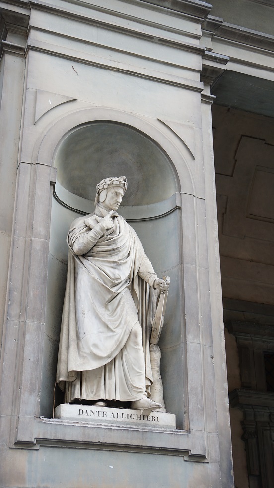 入場の時は気が付かなかったのですが、入場の列が出来ている場所にはフィレンツェに関連した偉人達の像が建っていました。