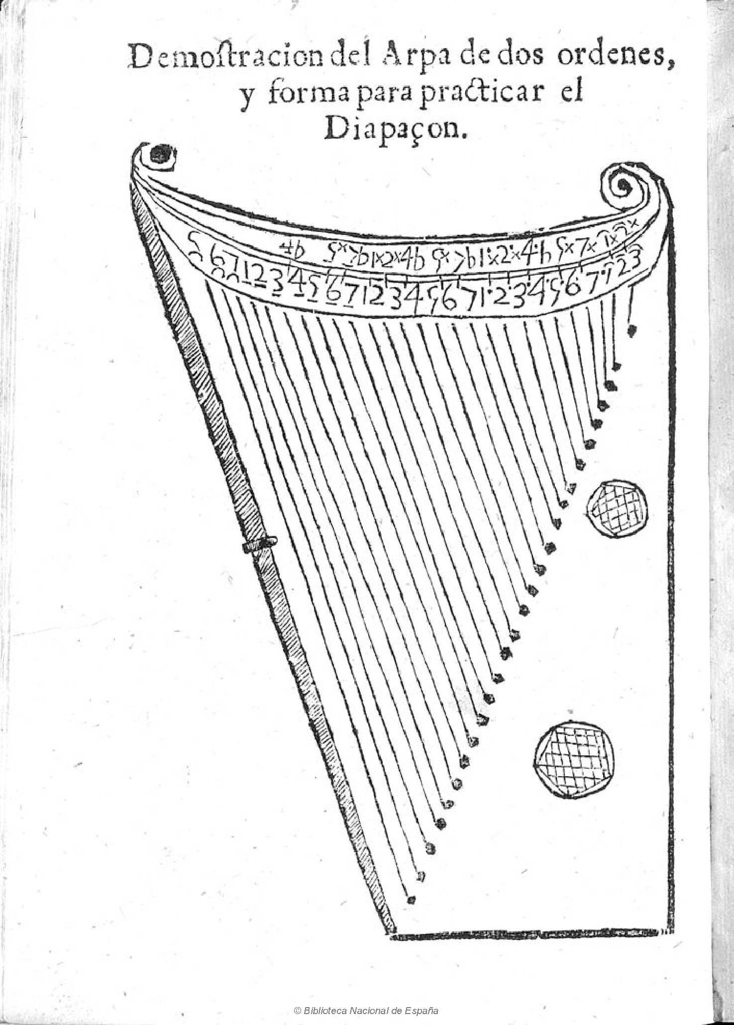 イベリア半島(現スペイン、ポルトガルがある半島)ではR.リバヤスが1677年の教則本『Luz, y norte musical para caminar por las cifras de la guitarra española y arpa, tañer, ...』で弦が2列張られた楽器『2列のハープArpa de dos órdenes』を紹介していたり