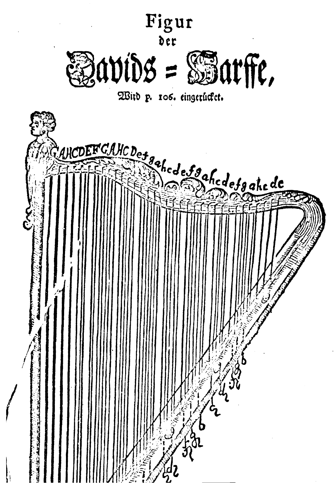 ドイツ語圏では『ダヴィドのハープDavids-harfe』という2列の弦を持ち、ブレイピン付きでビリついた音を出す楽器も紹介されていたりします。図は1738年にJ.P.アイゼルが出版した『Musicus autodidactus』のものです。
