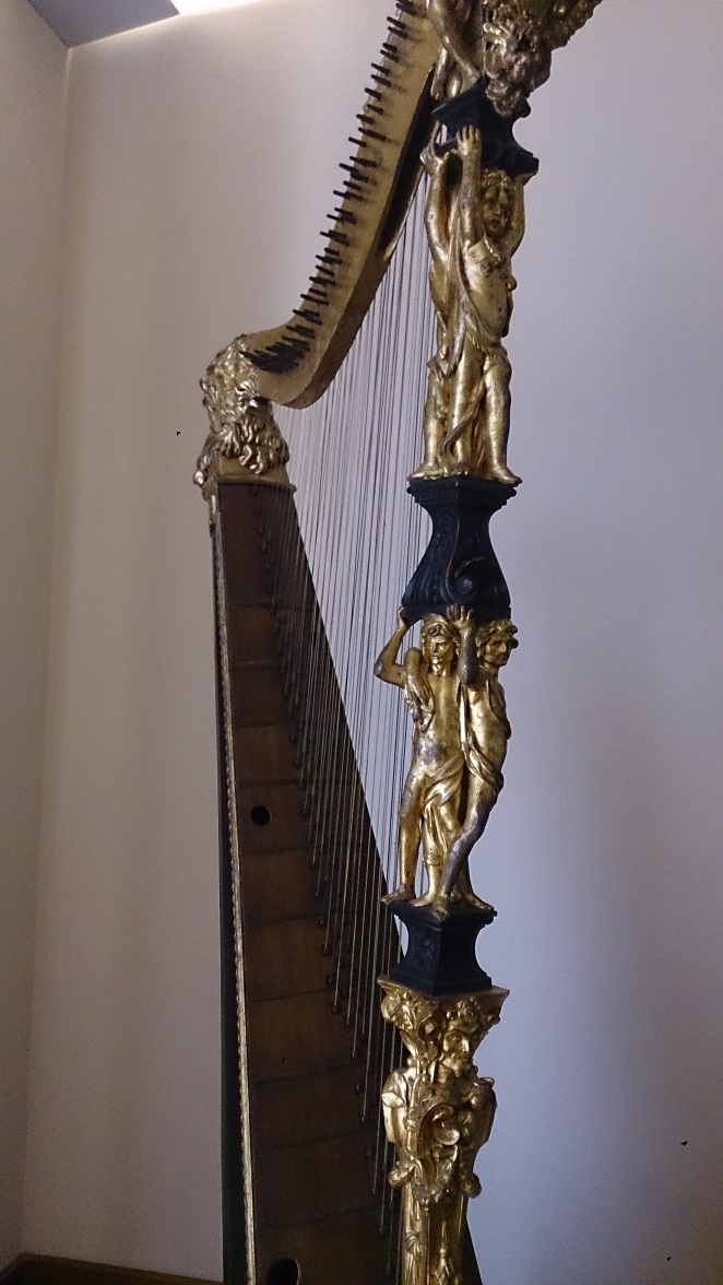 この楽器はイタリアのアルパ・ドッピアからの影響を受けているものの、右肩ではなく左肩に楽器を乗せて演奏するという独自の発展を遂げています。英国に帰化したことで有名なヘンデルは、オペラのアリアの中にもハープのパートを書いていますが、ヘンデルの近くにはこのような複数列のあるハープがありました。