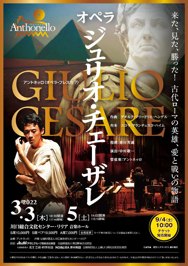 ちなみに、来年になりますが、3月3日と5日ではアントネッロさんのジュリオ・チェーザレに出演し、ハープのついたアリアも演奏する予定です。