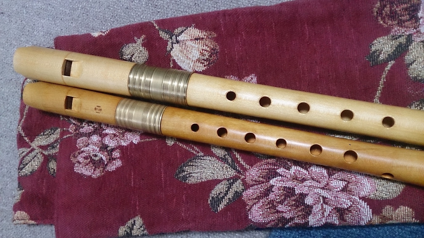 今回お聴きいただくリコーダー。現在『ガナッシリコーダー』と呼ばれているタイプのものを2本演奏します。下側の楽器は平尾重治氏、上側は平尾清治氏製作。