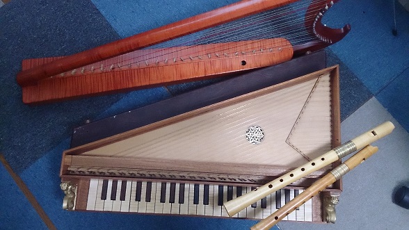 スピネッティーナ(小さなチェンバロ)とゴシックハープをリコーダーとのアンサンブルでお聴きいただきます。